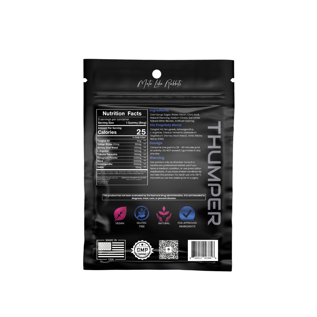 Thumper Sex Gummies 20CT are formulated to enhance mood, confidence, and overall enjoyment with a flavorful, easy-to-take gummy format. Designed for adults seeking an elevated experience, these gummies deliver consistent effects in a discreet and convenient form. With 20 gummies per pack, they offer a simple and enjoyable way to support longer-lasting, more satisfying moments.